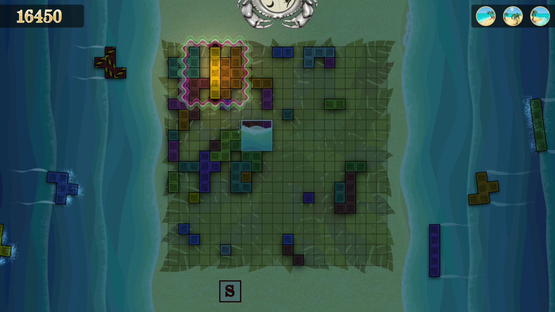 Washed Up! is a simple yet addictive pentomino-arranging puzzle game. You must help your crab buddies clear the beaches of the blocks which are washing ashore, before they cause pollution.